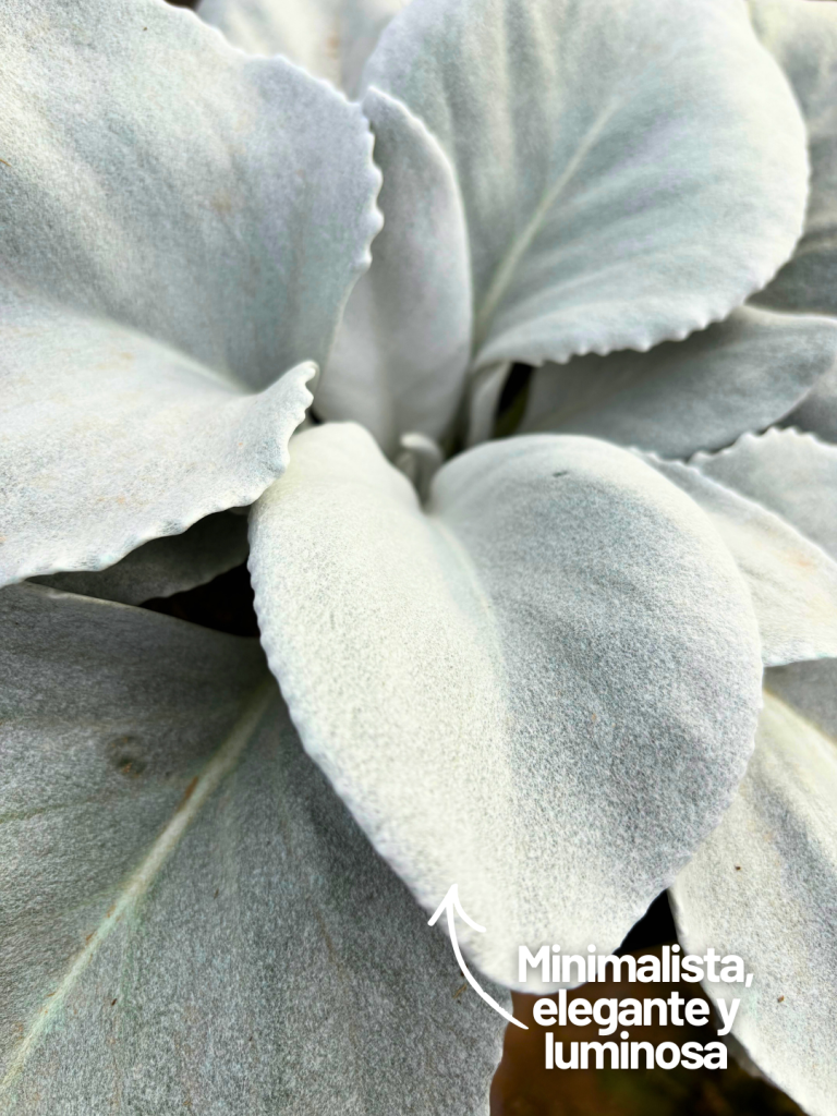 En un momento del año dominado por rojos, verdes oscuros y luces cálidas, hay una planta que consigue llamar la atención con solo una textura: el Senecio ‘Angel Wings’. Sus hojas plateadas, casi blancas, parecen salidas de un paisaje nevado y encajan a la perfección con la estética invernal.